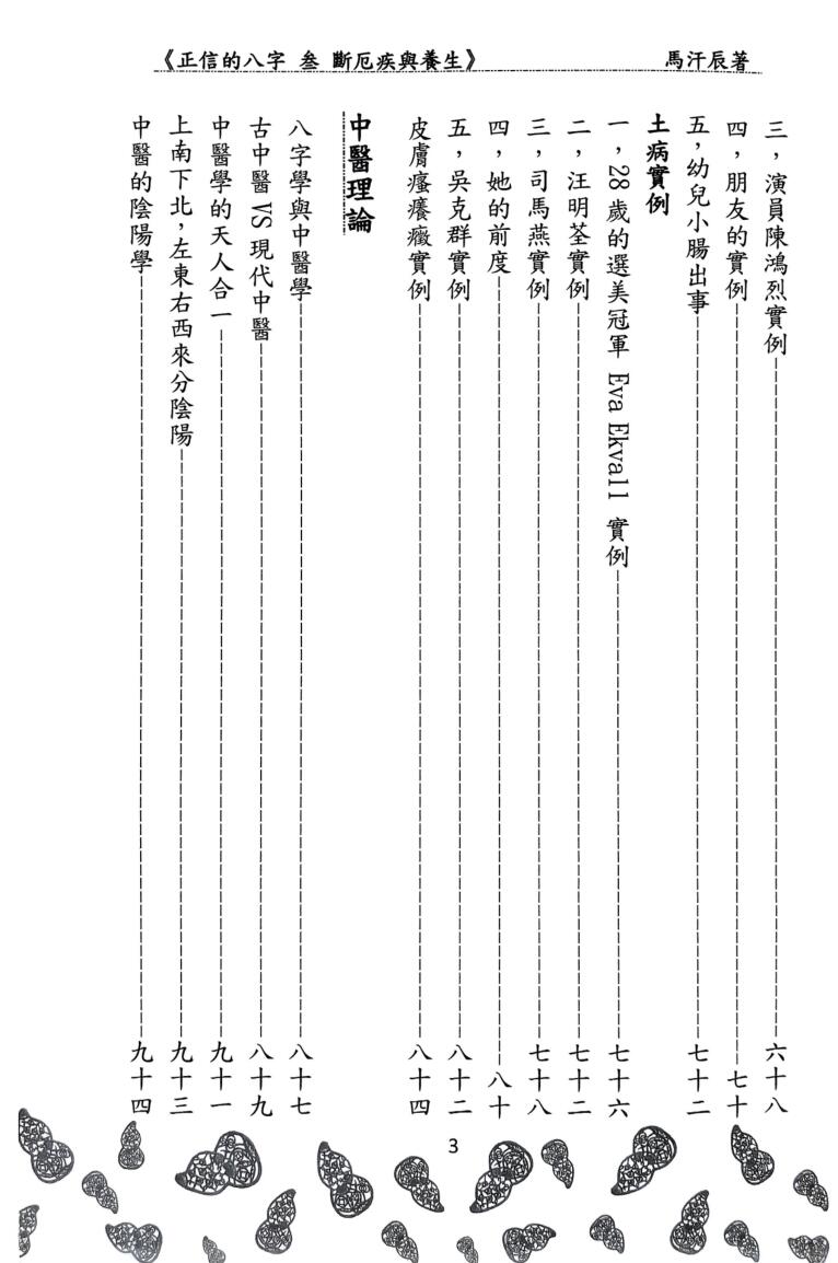 八字论命,有个环节,就是断厄疾,在笔者研究的众多案例之中,发现命格的先天体质,从出生的生辰八字可以得到很重要的启示,值得我们重视。此书列出五十多个实例宫读者参考。了解了先天体质,从小养成良好的生活习惯,配合适当的饮食,相信可以达到养生的目的,除了避免疾病,也可延年益寿。每个人的健康,影响到每个人的曼陀罗。也就是说,涉及到身边的亲朋好友,甚至几代人,故此,请多重视。