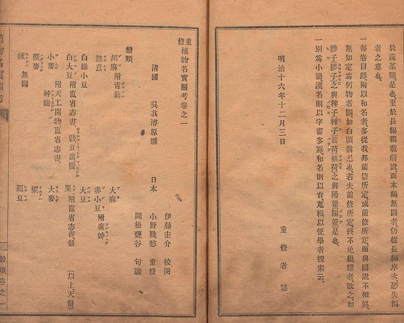 重修植物名实图考 32卷 吴其濬(清)小野职修 训点者冈松瓮谷 刊本 ,明治16年 ~ 刊本 ,明治20年
