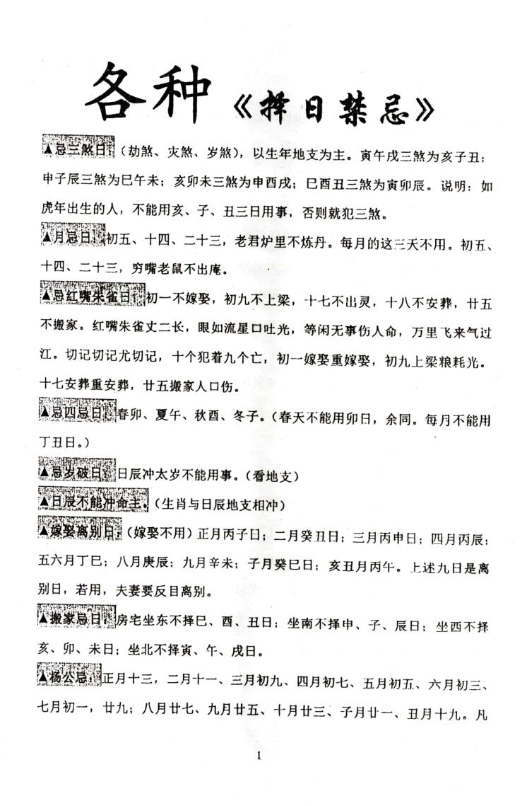 《各种择日禁忌》