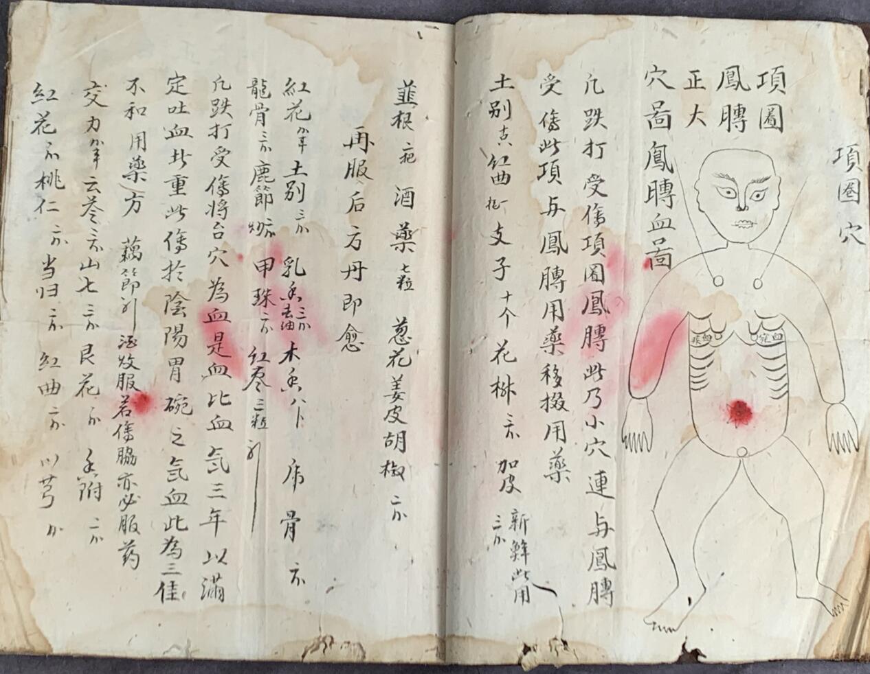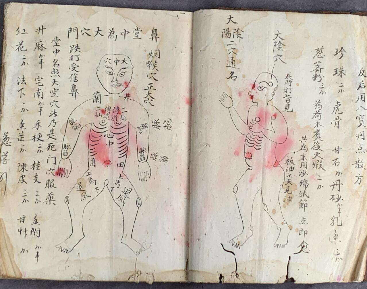 简介:《梅山张五郎跌打医书》罕见道医结合跌打书,内有讲全身各个部位打伤的穴位图。有药方有剂量,图文并茂,先服用什么后服用什么非常明了。后面有几页明确表示十二时辰的处理办法,比如什么时辰打死什么穴位用什么处理办法等,辨舌台所禁内容,四季全身五脏六腑通各经络等问题,各气归血脉不知,五行生克十二时辰等问题,还有掌指诸血图。