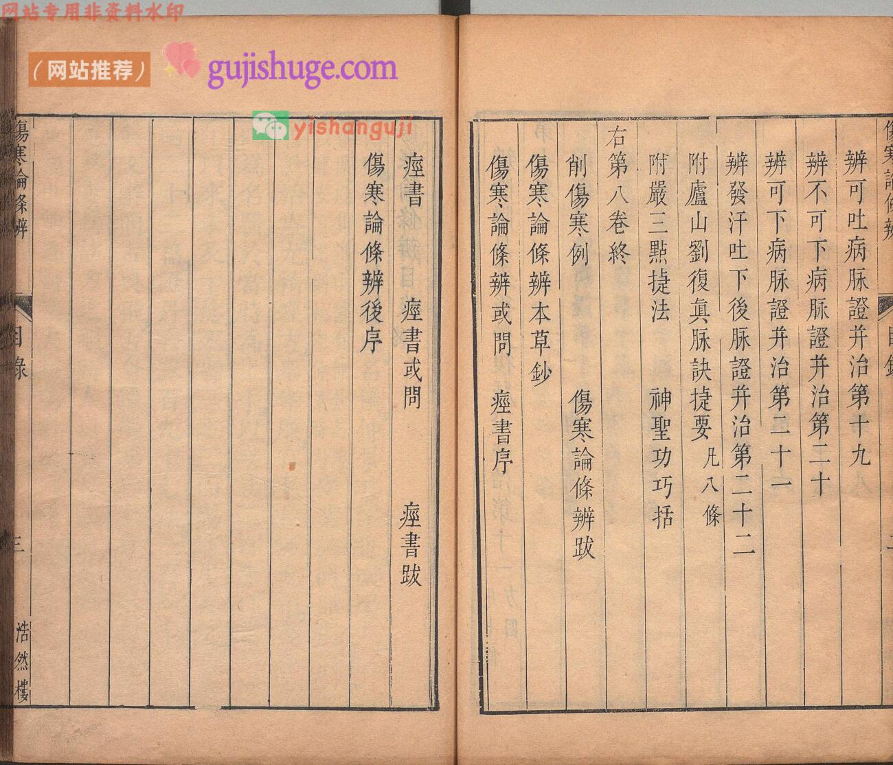 古籍藏书阁 » 伤寒论条辨 8卷 伤寒论条辨本草钞・痉书・伤寒论条辨或问各1卷 方有执 明万历21年