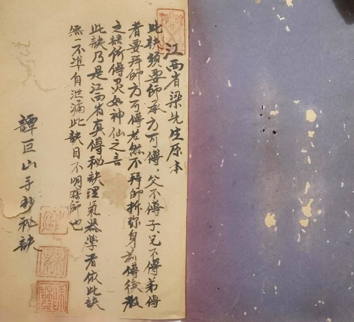 简介:《地理三元紫白秘诀》谭巨山手抄秘诀,江西梁先生原本,民国二十七年抄本。
