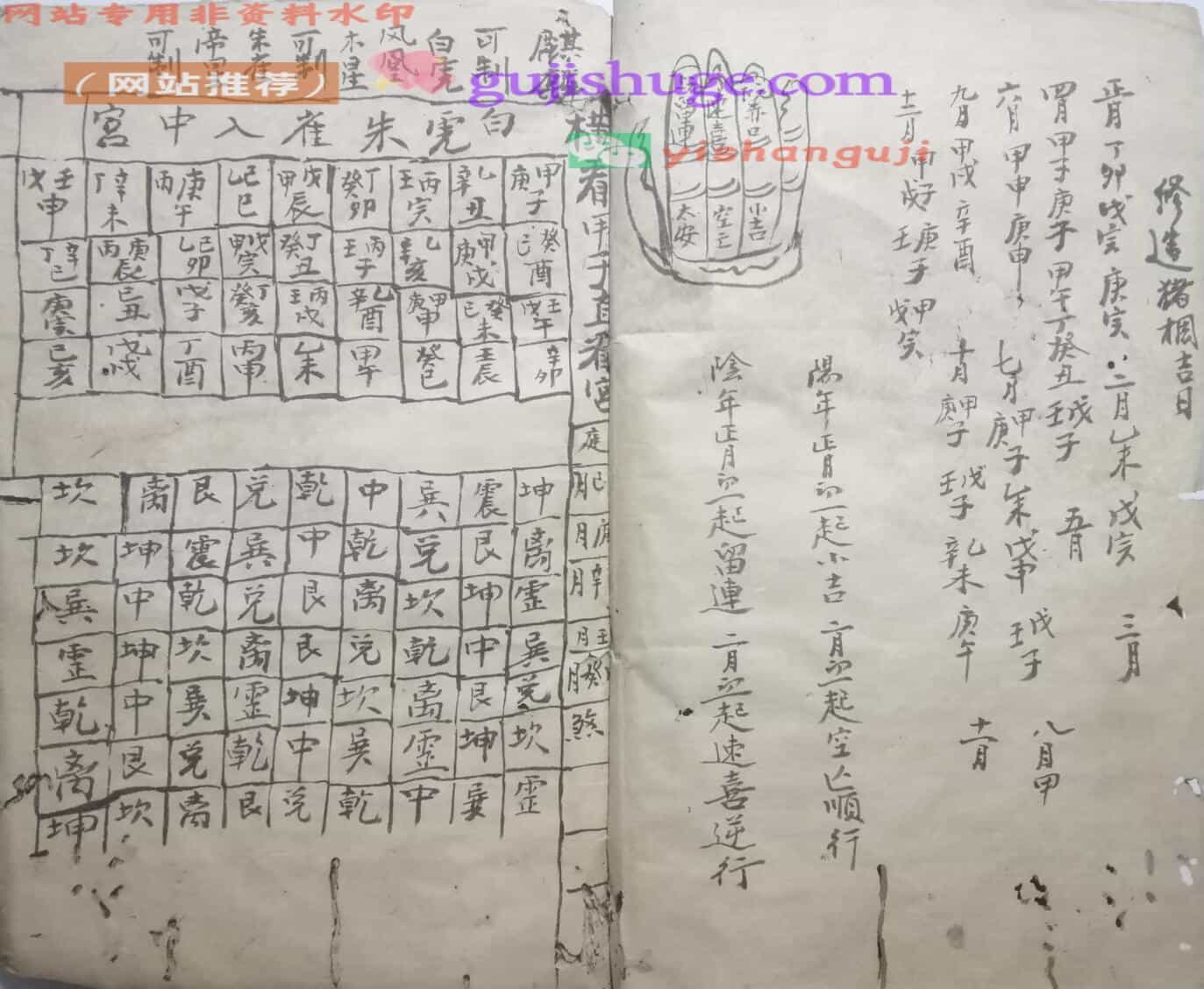 《修造楼棚吉日》手抄本可以这么介绍:这是一本清代民间择吉手抄秘本,全书收录了以修建动土为核心的择吉技法,同时涵盖嫁娶、出行、趋避神煞等实用内容。书中不仅有系统的干支五行推演方法,更附有手绘罗盘图、天宫图与六十甲子吉凶速查表,还有“飞天禄马定局”这类秘传口诀,是研究传统民俗文化与择吉术的资料,极具收藏与研究价值。