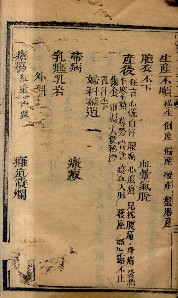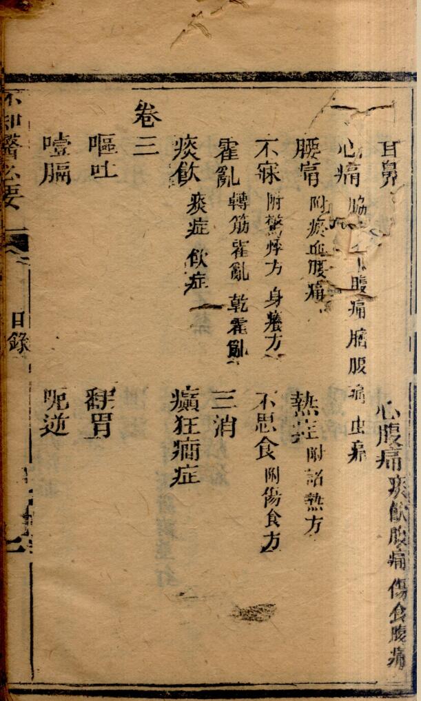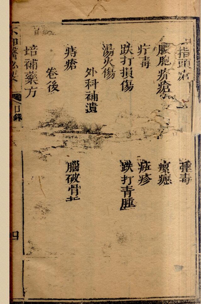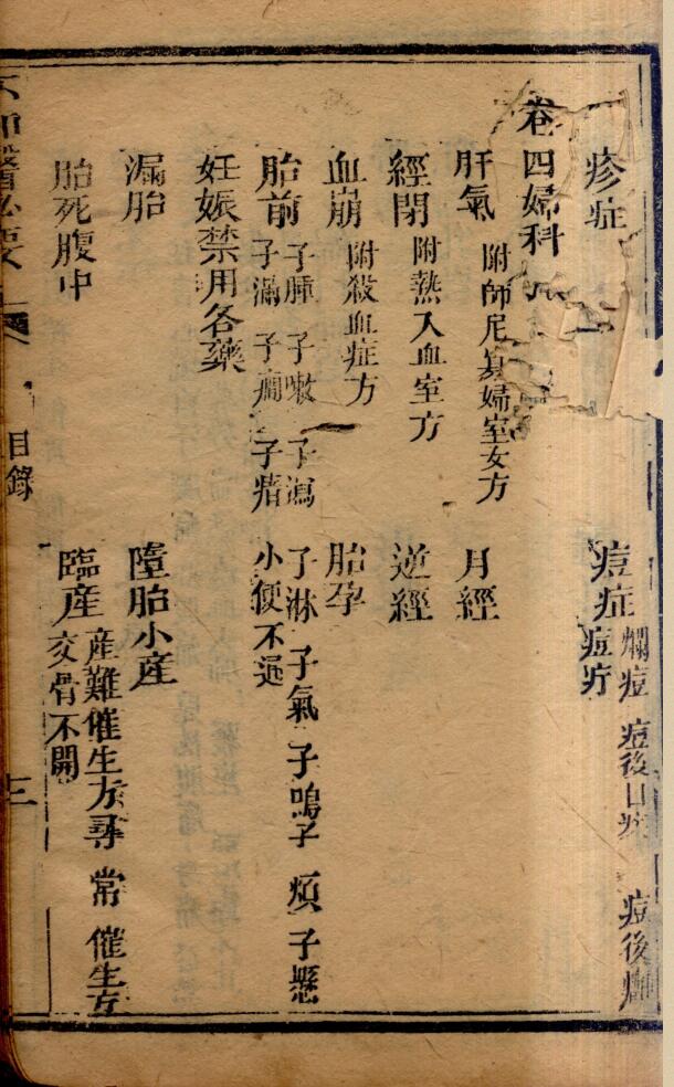 内容有:卷一(伤风、伤寒、咳嗽、喘促、哮喘、中风、中风经络、暑症、中暑、湿症、黄疸、痺症、痿症、疟疾等);卷二(血症、肿胀、积聚、眩晕、头痛、头风、咽喉、眼目、心腹痛、心痛、腰痛、热症、霍乱等);卷三(呕吐、翻胃、噎隔、呃逆、遗精、疝气、脚气、脱肛、泄泻、痢疾、疳症、痘症等);卷四(肝气、月经、经闭、逆经、血崩、胎孕、胎前、妊娠禁用各药、漏胎、堕胎小产、胎死腹中、生产不顺等等)。